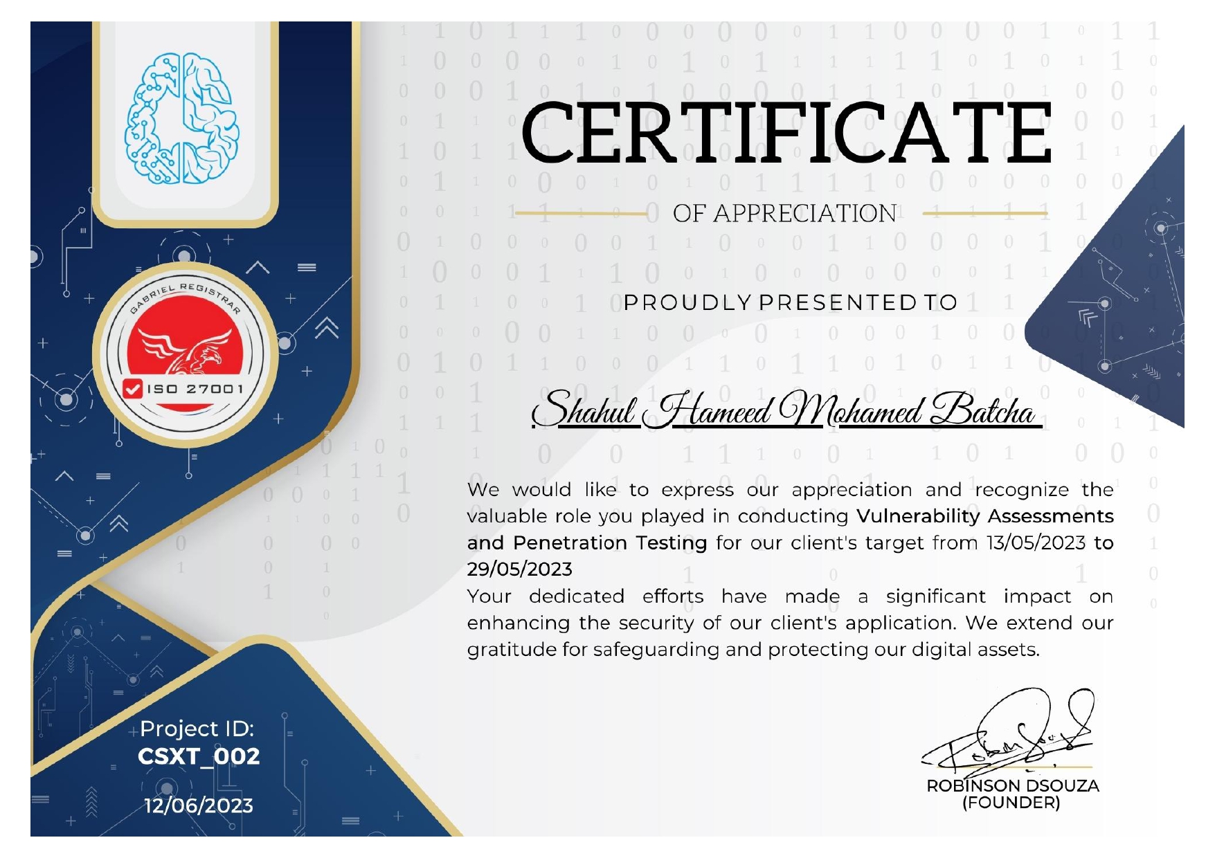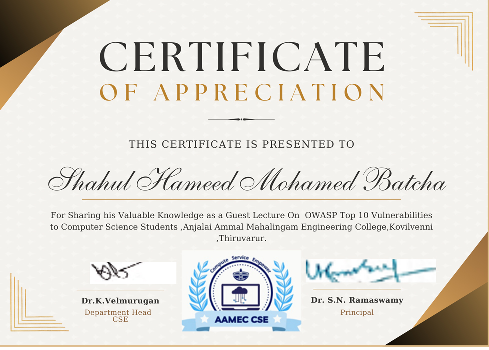 Appreciation Certificate by AAMEC