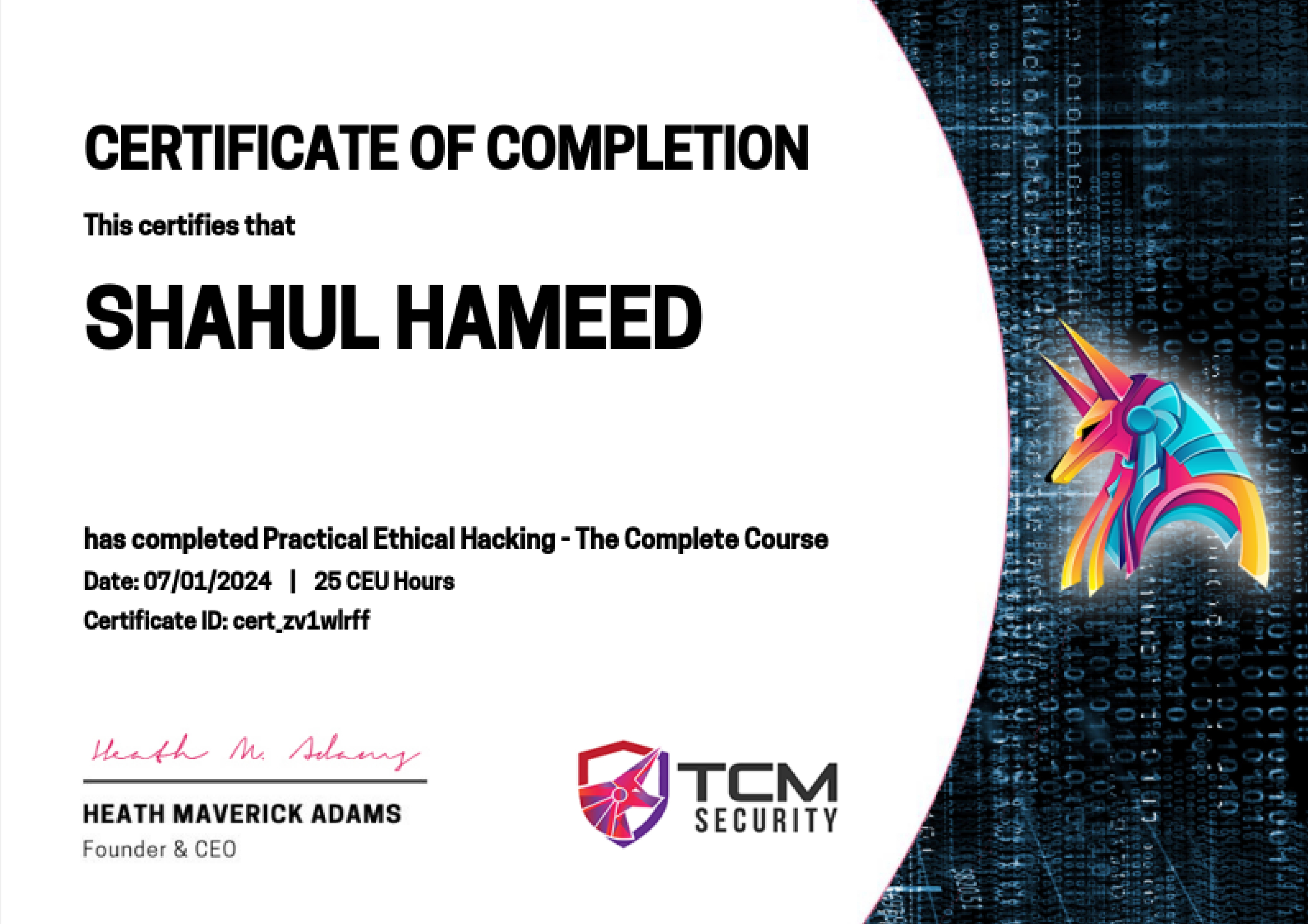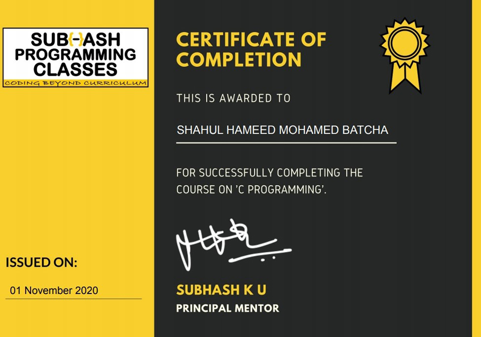 Certificate of Completion